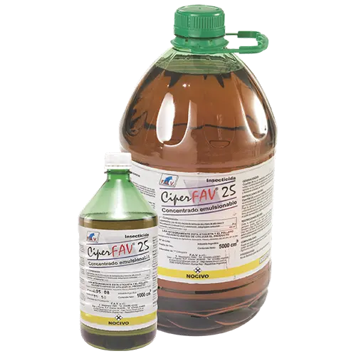 Composición: cipermetrina 25 g, solventes y emulsionantes c.s.p. 100 c.c. Presentación: envase pet x 1 y 5 litros.